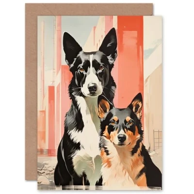 Artery8 Corgi and Collie Dog Portrait for Him or Her Man Woman Birthday Thank You Congratulations Blank Art Greeting Card