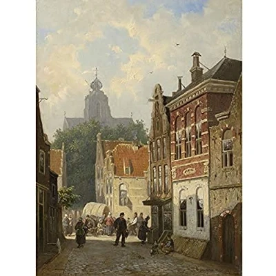 Artery8 Cornelis Springer Dutch Street Scene Painting Art Print Canvas Premium Wall Decor Poster Mural