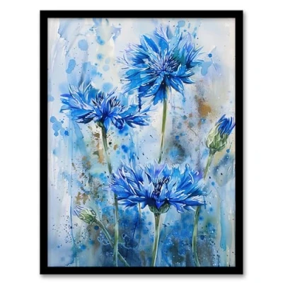 Artery8 Cornflowers Blue Flower Watercolour Painting Living Room Artwork Framed Wall Art Print 18X24 Inch
