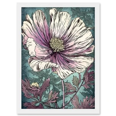 Artery8 Cosmos Flower Bloom Pastel Colour Watercolour Artwork Framed A3 Wall Art Print