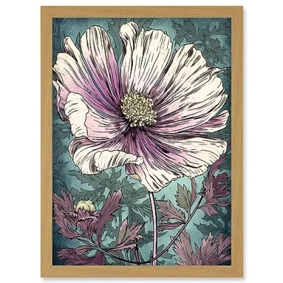 Artery8 Cosmos Flower Bloom Pastel Colour Watercolour Artwork Framed Wall Art Print A4