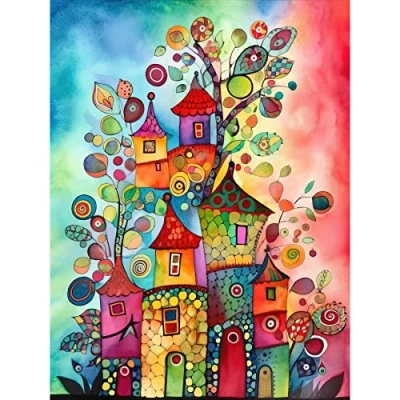 Artery8 Country Houses Concept Folk Art Watercolour Painting Large Wall Poster Print Thick Paper 18X24 Inch