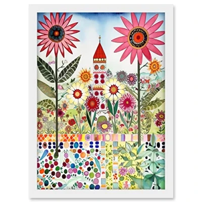 Artery8 Countryside Chapel Garden Folk Art Watercolour Painting Artwork Framed A3 Wall Print
