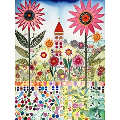 Artery8 Countryside Chapel Garden Folk Art Watercolour Painting Large Wall Poster Print Thick Paper 18X24 Inch