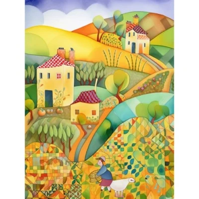 Artery8 Countryside Farming Folk Art Watercolour Painting Extra Large XL Wall Poster Print