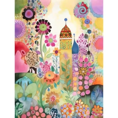Artery8 Countryside Garden Flowers In Spring Folk Art Watercolour Painting Extra Large XL Wall Poster Print