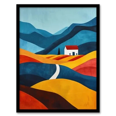Artery8 Countryside Hills House Bold Abstract Landscape For Living Room Artwork Framed Wall Art Print A4