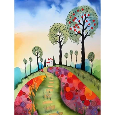Artery8 Countryside House Path With Flowerbeds Folk Art Landscape Watercolour Painting Large Wall Poster Print Thick Paper 18X24 Inch