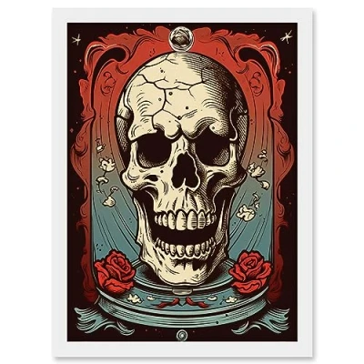 Artery8 Cracked Skull in a Glass Jar Tattoo Ink Body Art Rockabilly Americana 50s Artwork Framed A3 Wall Print