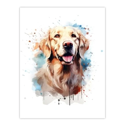Artery8 Cream Golden Retriever Lovers Gift Watercolour Pet Portrait Painting Artwork Extra Large XL Wall Art Poster Print