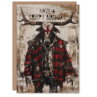 Artery8 Creepy Minotaur Texas Bull Man Concept Art For Him Birthday Card