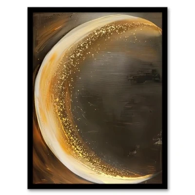 Artery8 Crescent Moon Oil Painting Gold Sparkle Living Room Artwork Framed Wall Art Print A4