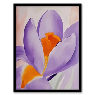 Artery8 Crocus Flower Orange Lilac Abstract Watercolour Living Room Artwork Framed Wall Art Print A4