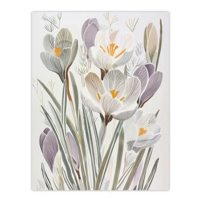 Artery8 Crocus Flowers in Bloom Artwork Pastel Bouquet Living Room Extra Large XL Wall Art Poster Print