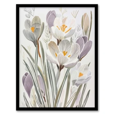 Artery8 Crocus Flowers in Bloom Artwork Pastel Bouquet Living Room Framed Wall Art Print A4
