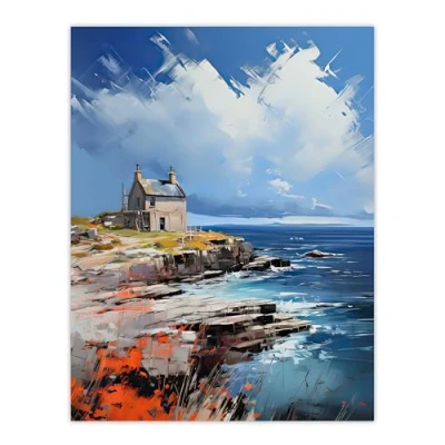 Artery8 Crofters Cottage on Scottish Coastal Landscape Extra Large XL Wall Art Poster Print