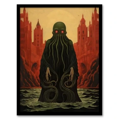 Artery8 Cthulhu Awakens H.P. Lovecraft Mythos Arkham Horror Yog Sothoth Artwork Painting Framed Wall Art Print A4