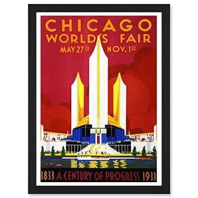 Artery8 Cultural World Fair Chicago 1933 Centennial A4 Artwork Framed Wall Art Print