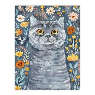 Artery8 Cute Blue British Shorthair Cat Lover Floral Pet Living Room Large Wall Art Poster Print Thick Paper 18X24 Inch