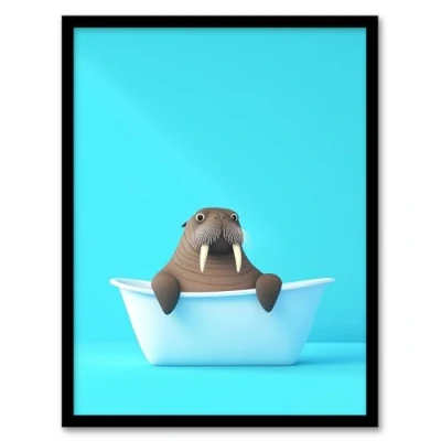 Artery8 Cute Cartoon Walrus in Bathtub Bath Time Vibrant Bathroom Toilet Artwork Framed Wall Art Print A4