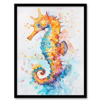 Artery8 Cute Colourful Seahorse Bright Watercolour Living Room Artwork Framed Wall Art Print A4