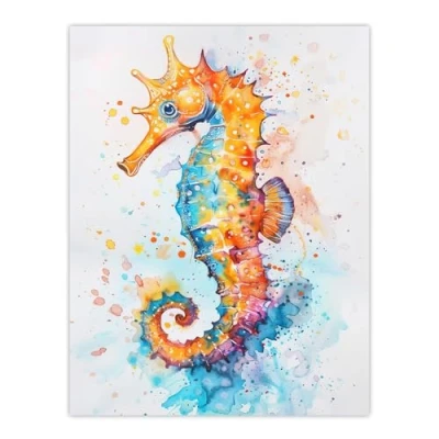 Artery8 Cute Colourful Seahorse Bright Watercolour Living Room Large Wall Art Poster Print Thick Paper 18X24 Inch