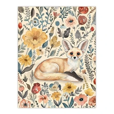 Artery8 Cute Fennec Fox Boho Flower Pattern Watercolour Kids Bedroom Nursery Large Wall Art Poster Print Thick Paper 18X24 Inch