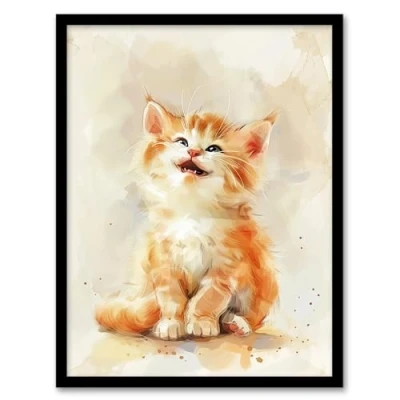 Artery8 Cute Happy Fluffy Ragdoll Kitten Orange Cat Lover Living Room Artwork Framed Wall Art Print A4