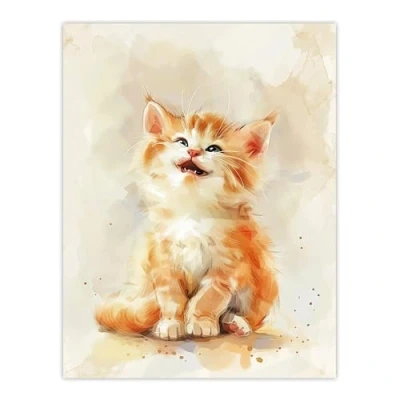 Artery8 Cute Happy Fluffy Ragdoll Kitten Orange Cat Lover Living Room Extra Large XL Wall Art Poster Print
