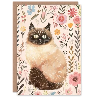 Artery8 Cute Himalayan Cat Lover Pink Floral Pet Portrait For Her Woman Birthday Card