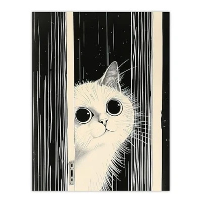 Artery8 Cute Kitty Black White Cat Lover Pet Painting Living Room Extra Large XL Wall Art Poster Print