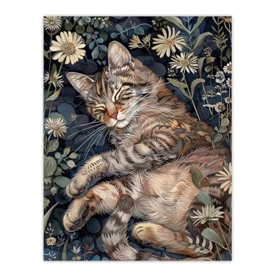 Artery8 Cute Moggie Sleeping in Daisy Field Cat Lover Living Room Large Wall Art Poster Print Thick Paper 18X24 Inch