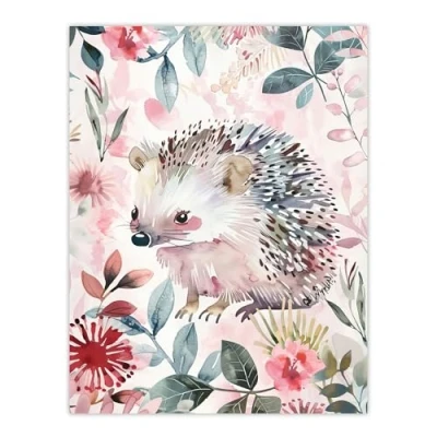 Artery8 Cute Pastel Hedgehog in Wildflowers Watercolour Kids Bedroom Extra Large XL Wall Art Poster Print