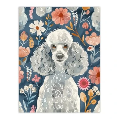 Artery8 Cute Poodle Floral Portrait Blue Pink Dog Lover Living Room Extra Large XL Wall Art Poster Print