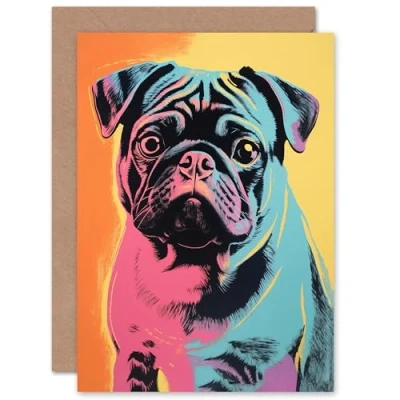 Artery8 Cute Pug Dog Pet Portrait Fan Lover for Him or Her Man Woman Birthday Thank You Congratulations Blank Art Greeting Card