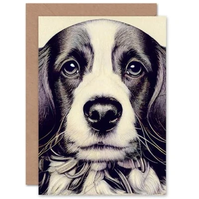 Artery8 Cute Puppy Portrait for Wife Her Mum Sister Daughter Mom Gran Nan Birthday Thank You Congratulations Blank Art Greeting Card