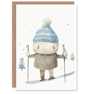 Artery8 Cute Ragdoll Skiing Snow Winter Ski For Child Kids Xmas Festive Christmas Card