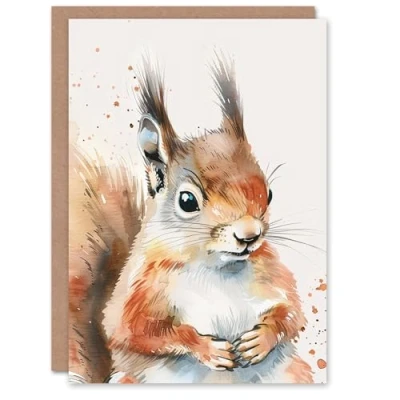 Artery8 Cute Red Squirrel Bright Watercolour Animal Blank For Him Or Her Art Birthday Card