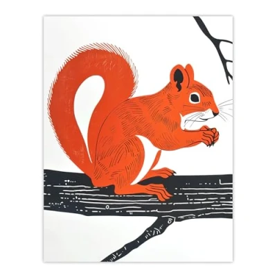 Artery8 Cute Red Squirrel on Tree Branch Bright Design Living Room Large Wall Art Poster Print Thick Paper 18X24 Inch
