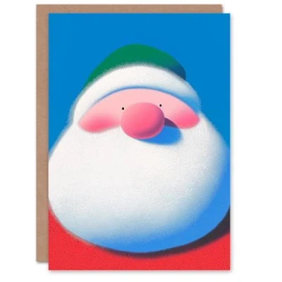 Artery8 Cute Round Santa Claus Vibrant Modern Graphic Blank For Him Or Her Art Christmas Card