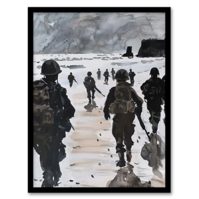 Artery8 D Day Landing Normandy Beach WWII War Soldiers Man Cave Artwork Framed Wall Art Print A4