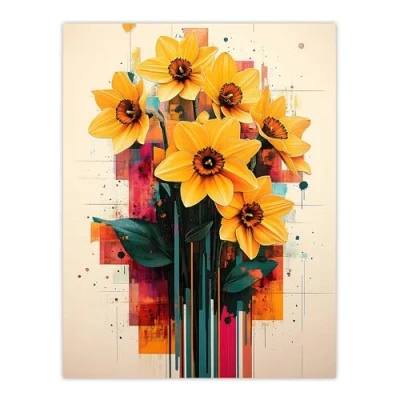 Artery8 Daffodil Bouquet Modern Floral Abstract Painting Living Room Large Wall Art Poster Print Thick Paper 18X24 Inch