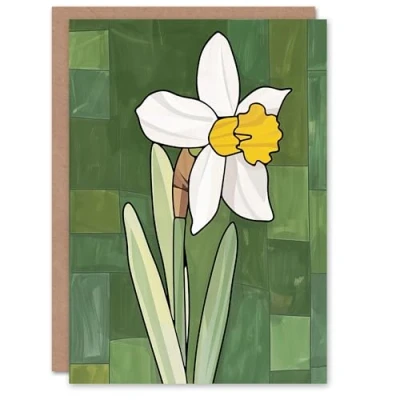 Artery8 Daffodil Flower Bloom Green Stylised Painting Greeting Birthday Card Him Her All Blank