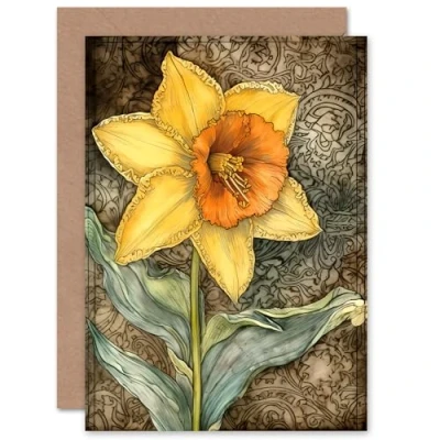 Artery8 Daffodil Flower Watercolour Art Nouveau for Wife Her Mum Sister Daughter Mom Gran Nan Birthday Thank You Congratulations Blank Greeting Card