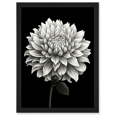 Artery8 Dahlia Flower Bloom White on Black Illustration Artwork Framed Wall Art Print A4
