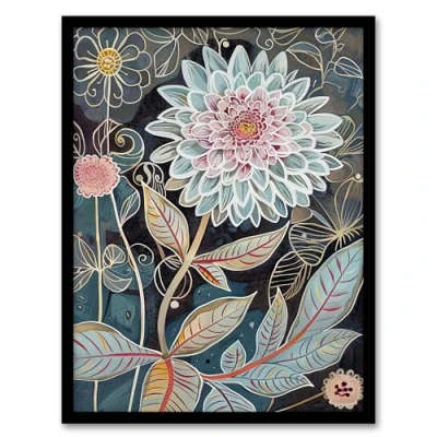 Artery8 Dahlia Flowers Artwork Dark Enchanted Floral Living Room Framed Wall Art Print A4