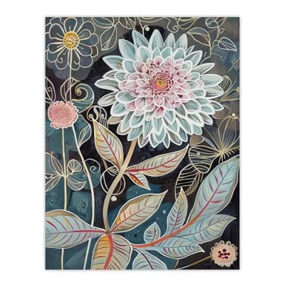 Artery8 Dahlia Flowers Artwork Dark Enchanted Floral Living Room Large Wall Art Poster Print Thick Paper 18X24 Inch