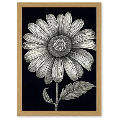 Artery8 Daisy Flower Bloom Black and White Pencil Drawing Artwork Framed Wall Art Print A4