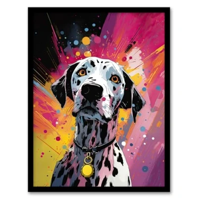 Artery8 Dalmatian Dog Lover Gift Pet Portrait Purple Orange Artwork Painting Framed Wall Art Print A4