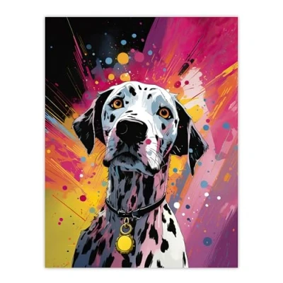 Artery8 Dalmatian Dog Lover Gift Pet Portrait Purple Orange Artwork Painting Large Wall Art Poster Print Thick Paper 18X24 Inch